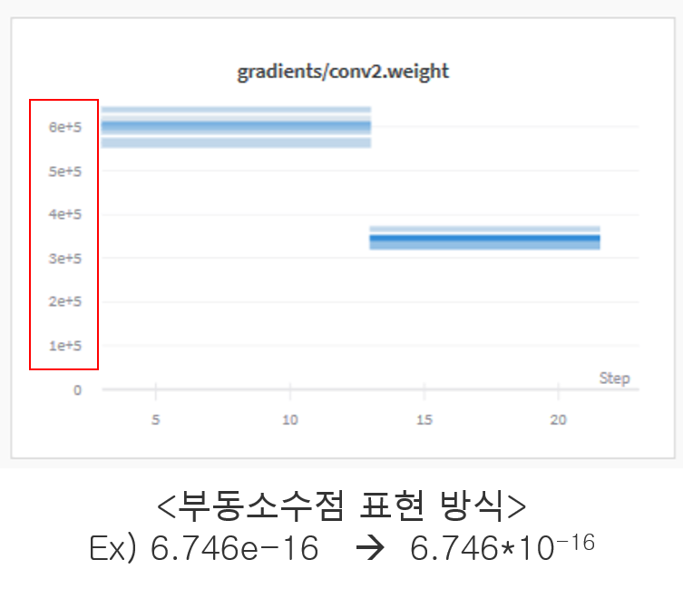 예를 들어, conv2 weight의 gradient 값도 대략 10^5로 굉장히 큰데, conv1 weight의 gradient 값이 대략 10^7 이면 exploding gradient를 의심해볼 수 있겠죠?