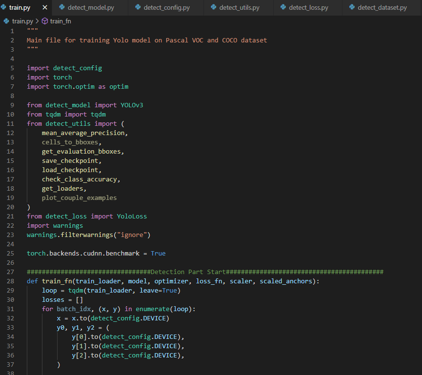 1. VS code 편집기에 YOLOv3를 구현해 놓습니다.