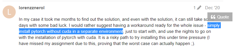 Thank you very much for your fast answer @lorenzznerol (are you italian like me?), I tried activating the base environment and it solves the warning in python but not the torch error. C:\Users\AZand_000\Downloads\Pytorch\pytorch>conda activate base (base)