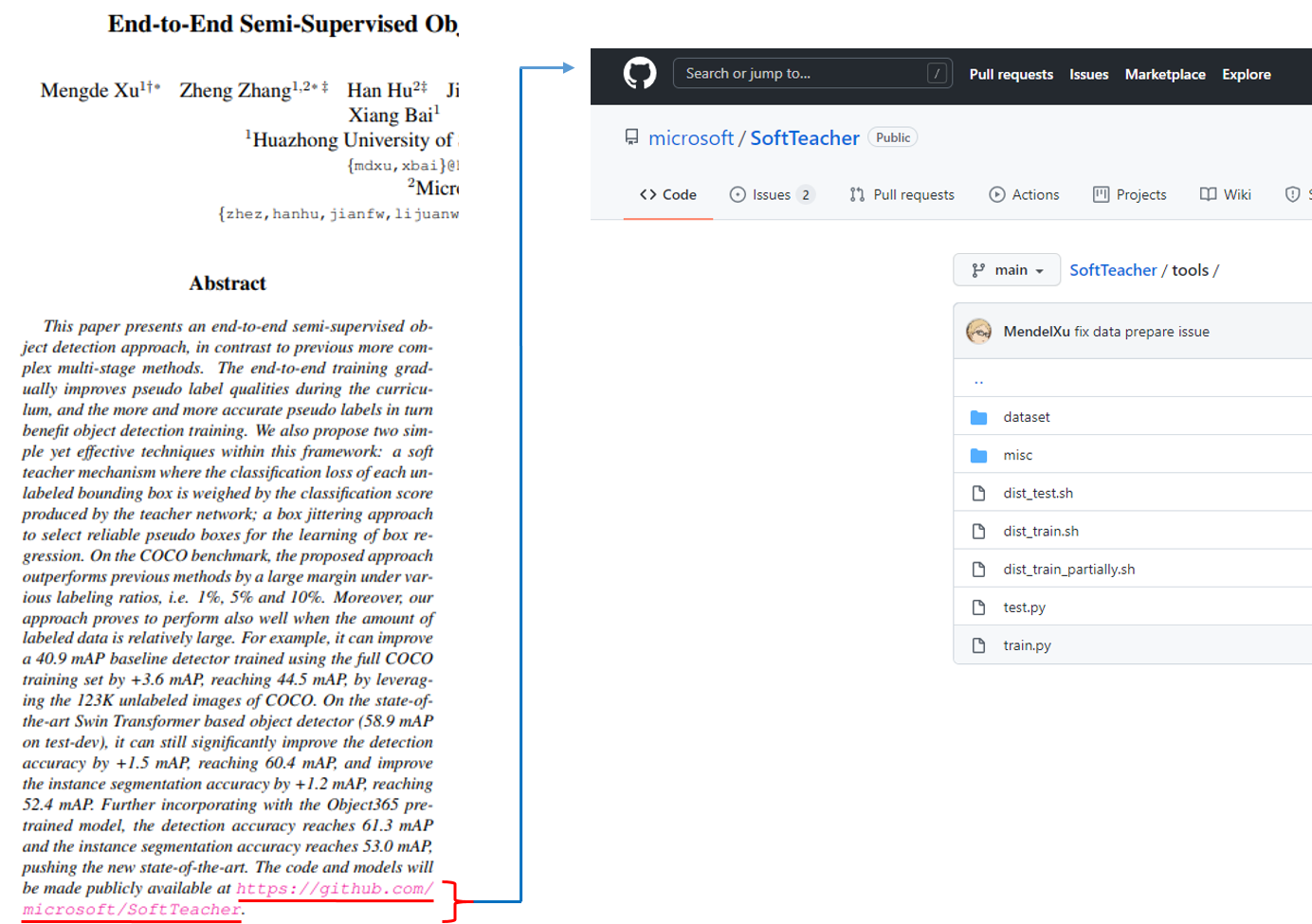 학계에서는 많은 연구자들에게 어필해야하므로 관련 코드를 github에서 볼 수 있게 해줍니다. 물론 연구자들은 전문가이기 때문에 언제든 github을 통해 돌려볼 수 도 있습니다. 논문도 훌륭하고 코드도 잘 돌아가면 그만큼 저자의 명성이 높아지겠죠.