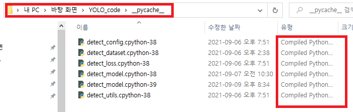 2. YOLOv3를 구현해 놓은 코드를 돌리면 __pycache__ 폴더가 생성됩니다.