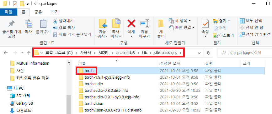 ( ↓↓↓anaconda or pip로 설치한 패키지들이 저장되어 있는 디렉토리↓↓↓)