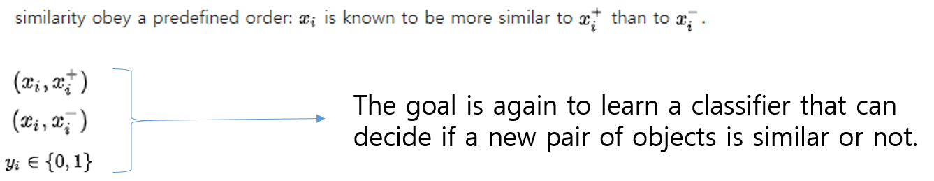 - 앞선 두 가지 방식과 다른 부분은 "세 가지 입력 데이터 (triplets of objects)"를 필요로 한다는 점입니다.