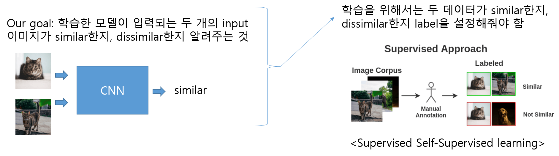 - 두 객체(ex: 이미지)간의 유사도를 알고 있다는 전제하에 supervised learning 학습을 시키는 것