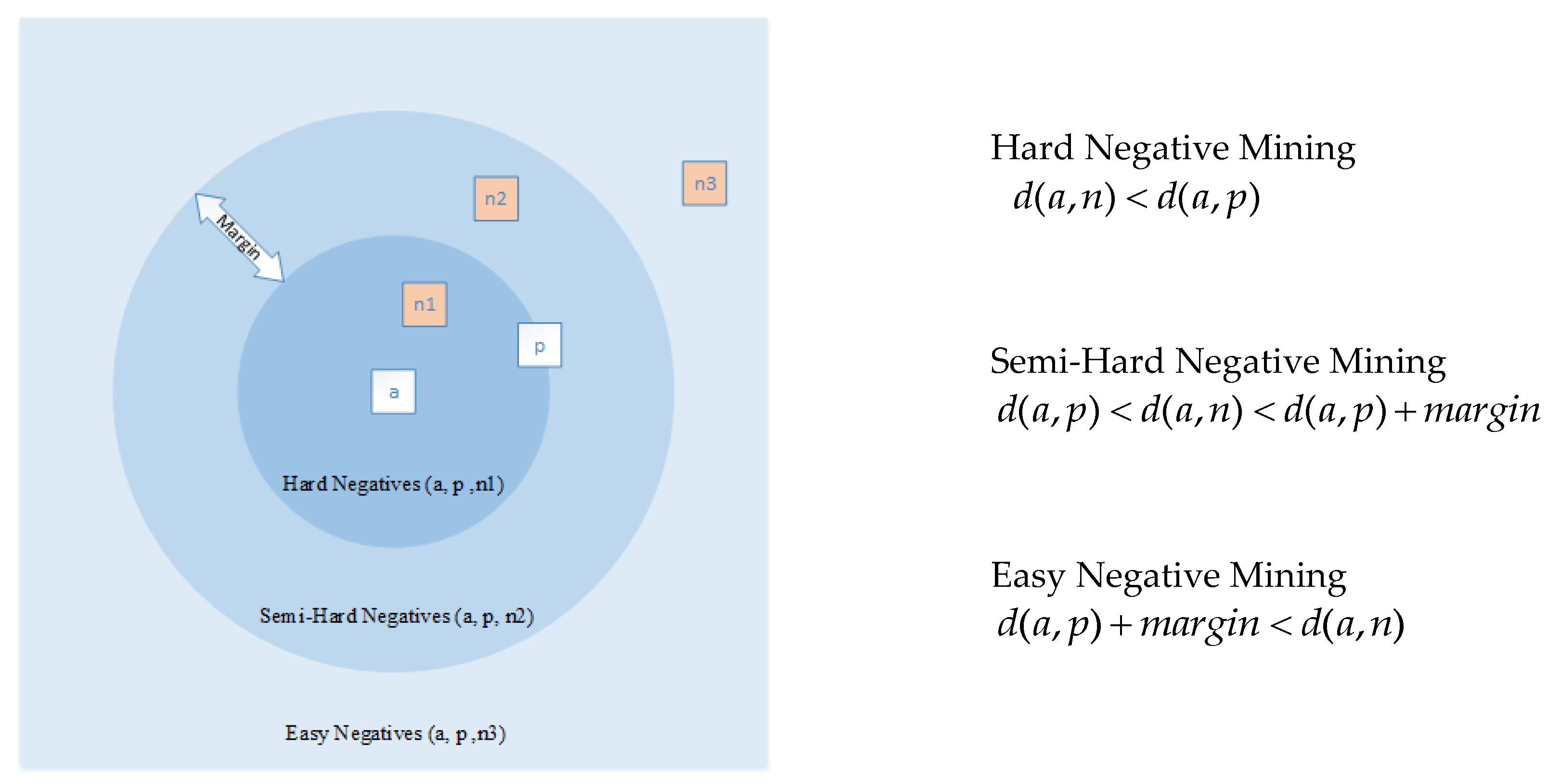 - Hard Negative Mining: positive pair에 해당하는 margin 안에 negative sample이 포함되어 있는 경우